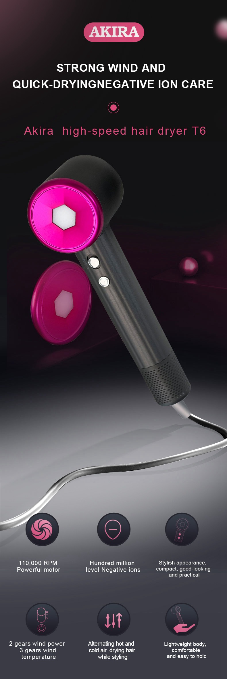 Akira high speed hair dryer,BPI-Life design and production