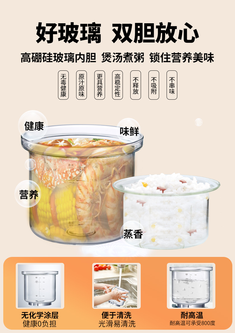 双胆高硼硅玻璃,搞冲击,耐高温,易清洗